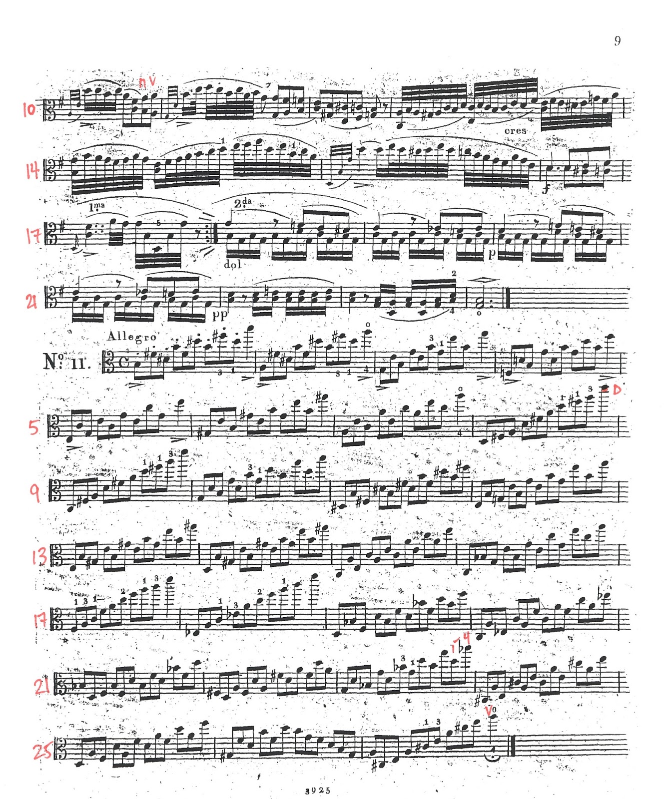 The tenth caprice is another beautiful aria that highlights Campagnoli's gift for melody. It lets the viola sing naturally, with simple phrases in the first half and florid passagework in the second.